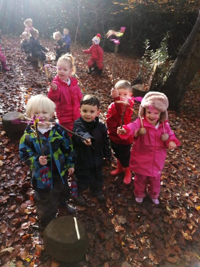 Nursery have spent the morning in the woods making sparklers! We hunted for sticks to make our own sparklers and then made yummy chocolate ones! What a lovely morning.