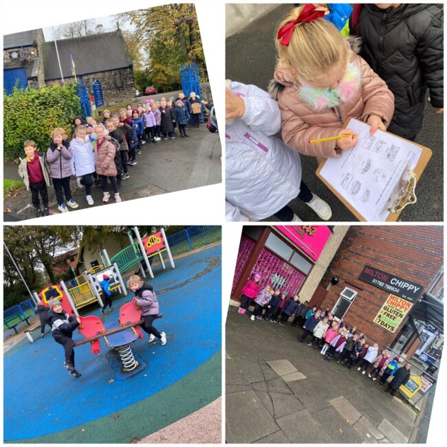 Year One went to Milton as part of their learning about the local area. They considered the human and physical geography – what has been made by humans and what has always been there – and completed a travel survey, spotted old and new buildings and visited the park and chippy! Their behaviour was excellent…