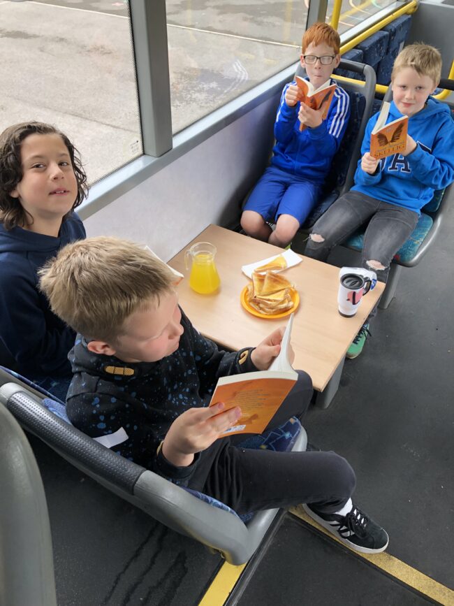 Year 5 had a great start to their book club on Wednesday. The children are reading the Skellig by David Almond and are completely hooked after the first three chapters. The children made use of the bus that was recently delivered and enjoyed having their discussions in a different learning environment.