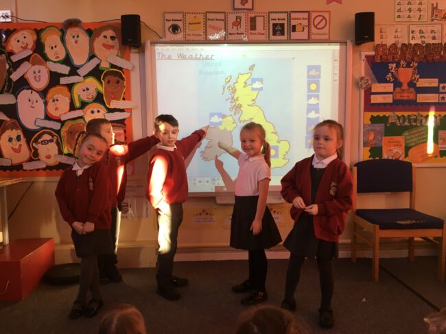 As part of our learning in geography, we have been looking at the UK today and naming the countries and capital cities. We also talked a lot about the weather we’ve been seeing lately and then in our teams, created our own weather reports! Each time they gave a report about the country, they gave…