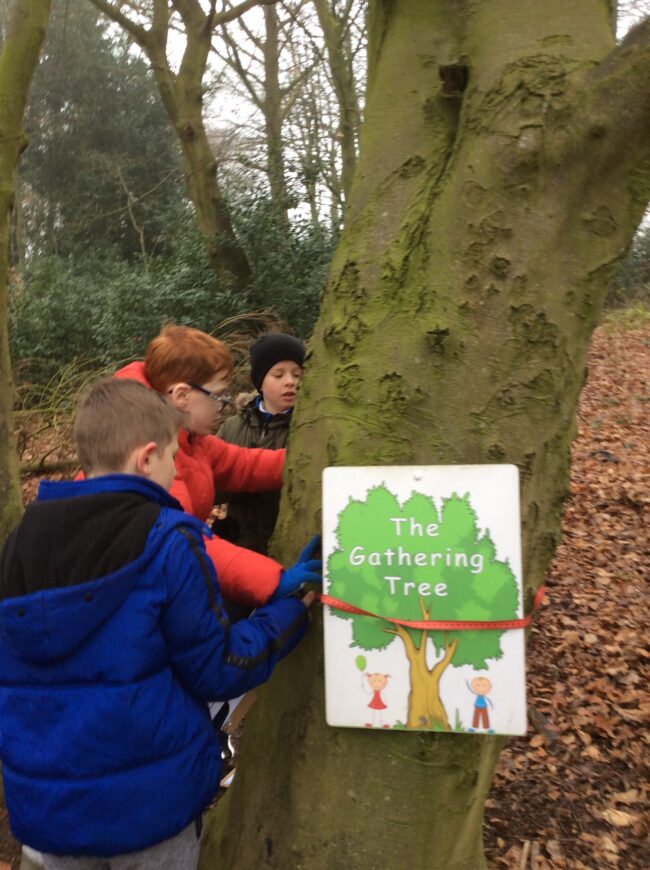This afternoon we had a lovely time in the woods. We have been searching for new plants growing, we saw lots of green buds and are going to keep our eye on them each week to see them changing. We also had a story in the woods by our author of the term ‘Jill Murphy’.