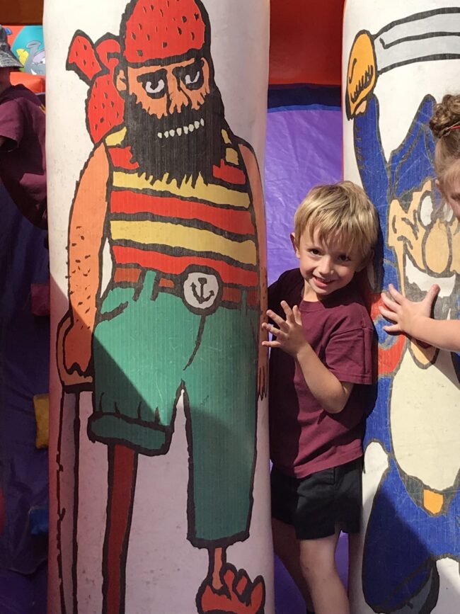 The treat has been revealed and EYFS and KS1 who are out on the field this morning couldn’t be happier! Our pirate ship, giant slide, bouncy castle and ice pops are a hit ☀️