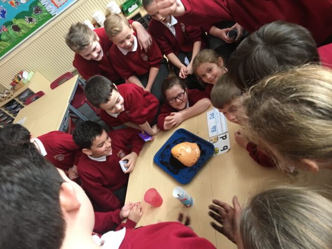 As part of our Science Day experiments there have been eruptions in the Year Three classroom! We’ve used vinegar and bicarbonate of soda to create our own volcanoes and have learned how magma pushes through the Earth’s crust and becomes lava! Why not try the experiment at home – make sure you keep the windows…