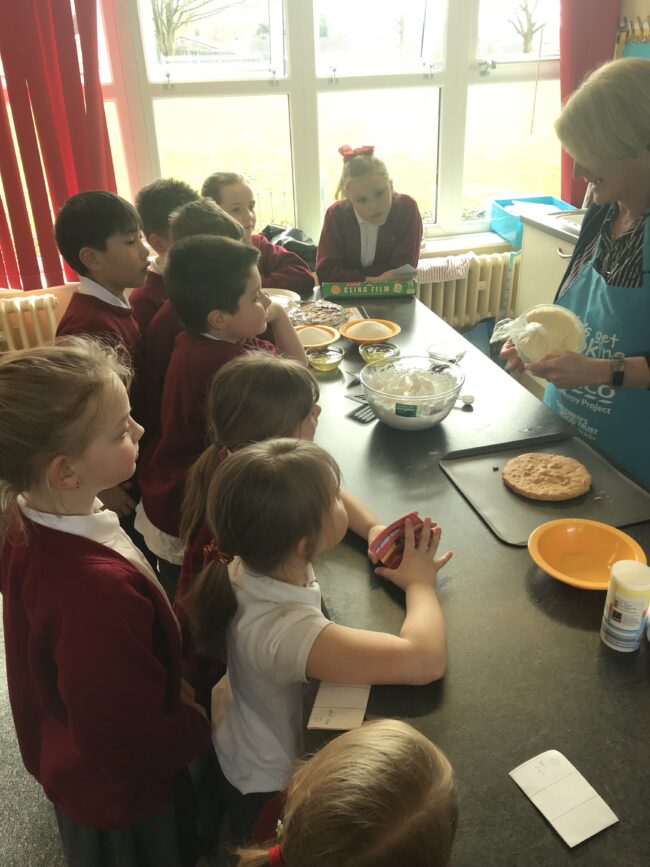 Mrs Green and Mrs Pope are helping children to bake a baked Alaska. Ask your child if they visited this science workshop and what they learned through the experiment.