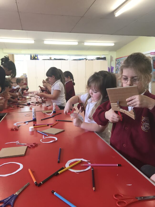 The rainbow spinner workshop has been chocka-block all day. The children have really enjoyed creating their spinner and watching how the colours do strange things! Ask them what they have learned in this session.