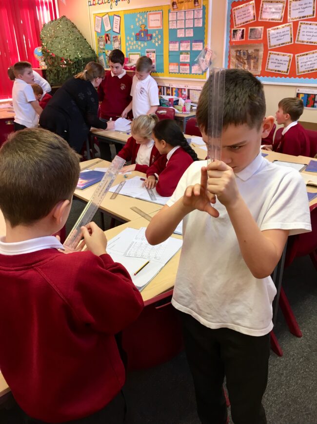 On Friday, Year 5 were converting metric lengths. They were measuring various parts of their body with a ruler in centimetres and then converting them to millimetres and metres.