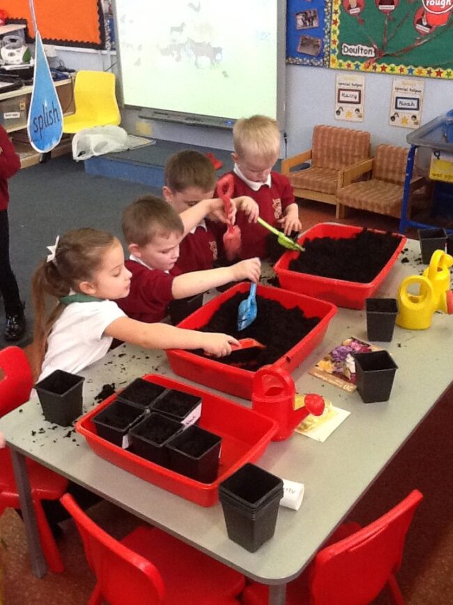 Last week the children in Nursery were learning the rhyme Mary, Mary Quite Contrary. We went for a walk around the school grounds to look for flowers and then we planted our own flowers ready for the summer.