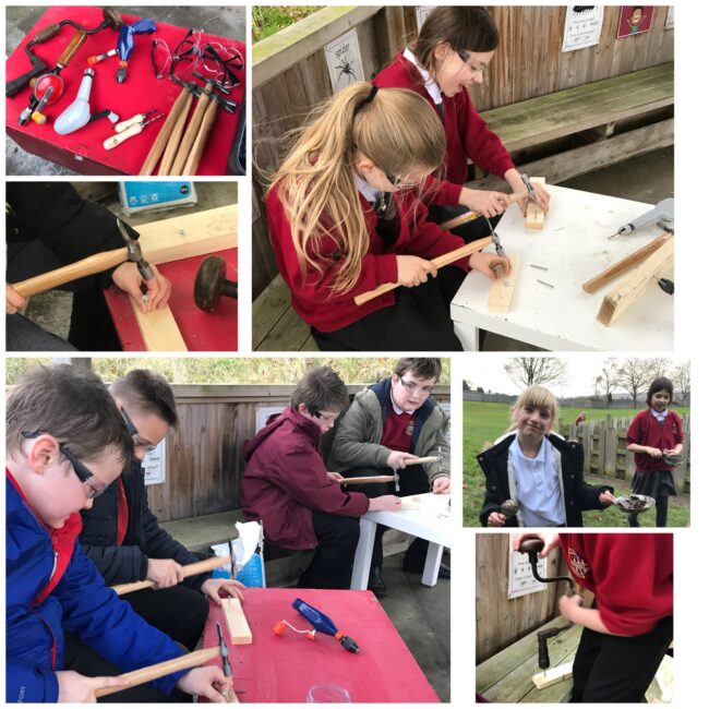A last minute change of day didn’t set us back, however with the weather being wet and muddy we made use of the outdoor hut! We had a lovely afternoon in our Go Wild workshop! We used tools -junior hacksaw, pin hammer, palm drill, hand drill & a bit and brace. We had a chat about…
