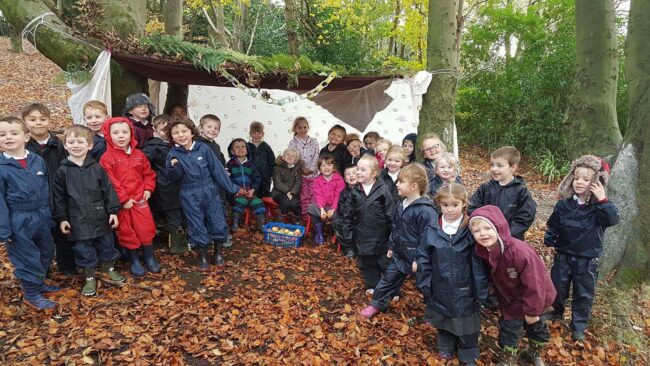 Today, Reception have built a Sukkah in the woods yo celebrate the Jewish festival of Sukkot. Here we are eating our fruit inside, just as Jewish people share their meals inside the Sukkah!