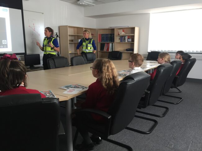 Some of our Y6 Pupils taking part in a workshop with police learning about antisocial behaviour and how it affects others.