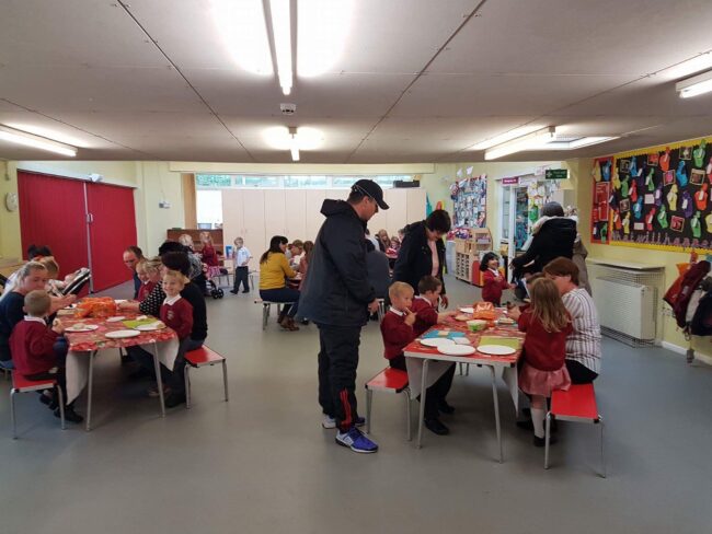 Reception children and parents have had a busy afternoon with the minibeasts. They have made honey sandwiches, pasta butterfly life cycles and sponge print caterpillars.