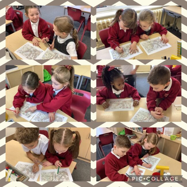 Year Two began their local history topic by comparing two maps of Baddeley Green: one from 1950 and one from 2023. They coloured in differences with one colour and similarities with another. They found lots of interesting changes!