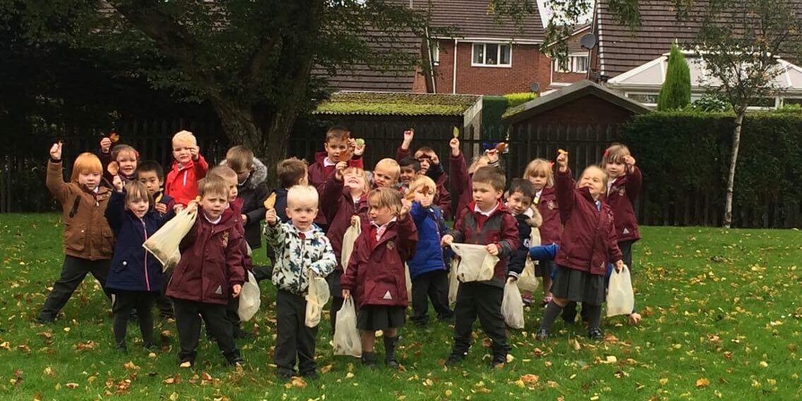 The nursery have been on a leaf hunt. We walked around the school grounds and searched for leaves. We talked about the colour of the leaves and why they had fallen off the trees. We have used the leaves in our Autumn display and we have looked at them using a magnifying glass. We enjoyed searching for the leaves but we did get a bit muddy. Sorry mums!