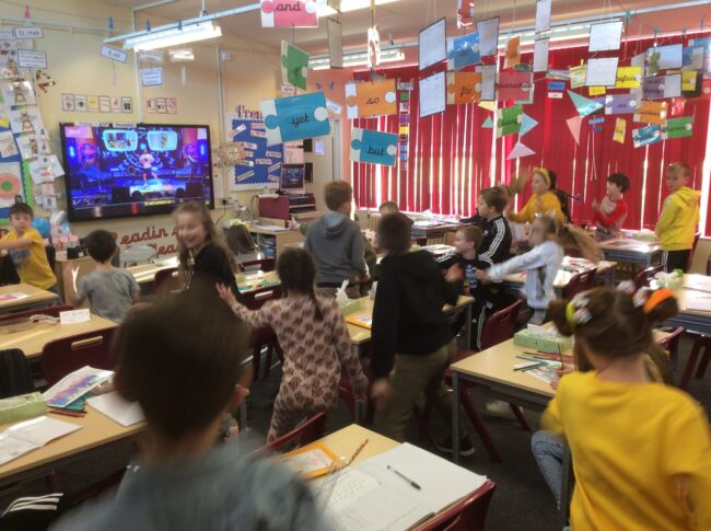 Year Four has been involved in lots of activities today. Here they are joining in with the last 15mins of Joe Wicks 24 hour workout challenge.