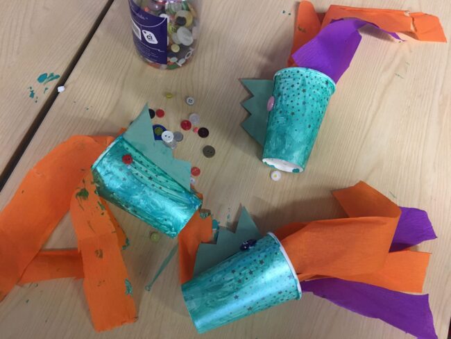 This weeks book was ‘Zog’ by Julia Donaldson! We created our own dragon blowers and got lots of paint on our lips blowing through the cups to make the flames shoot out! Fantastic as always! 🐉 🔥