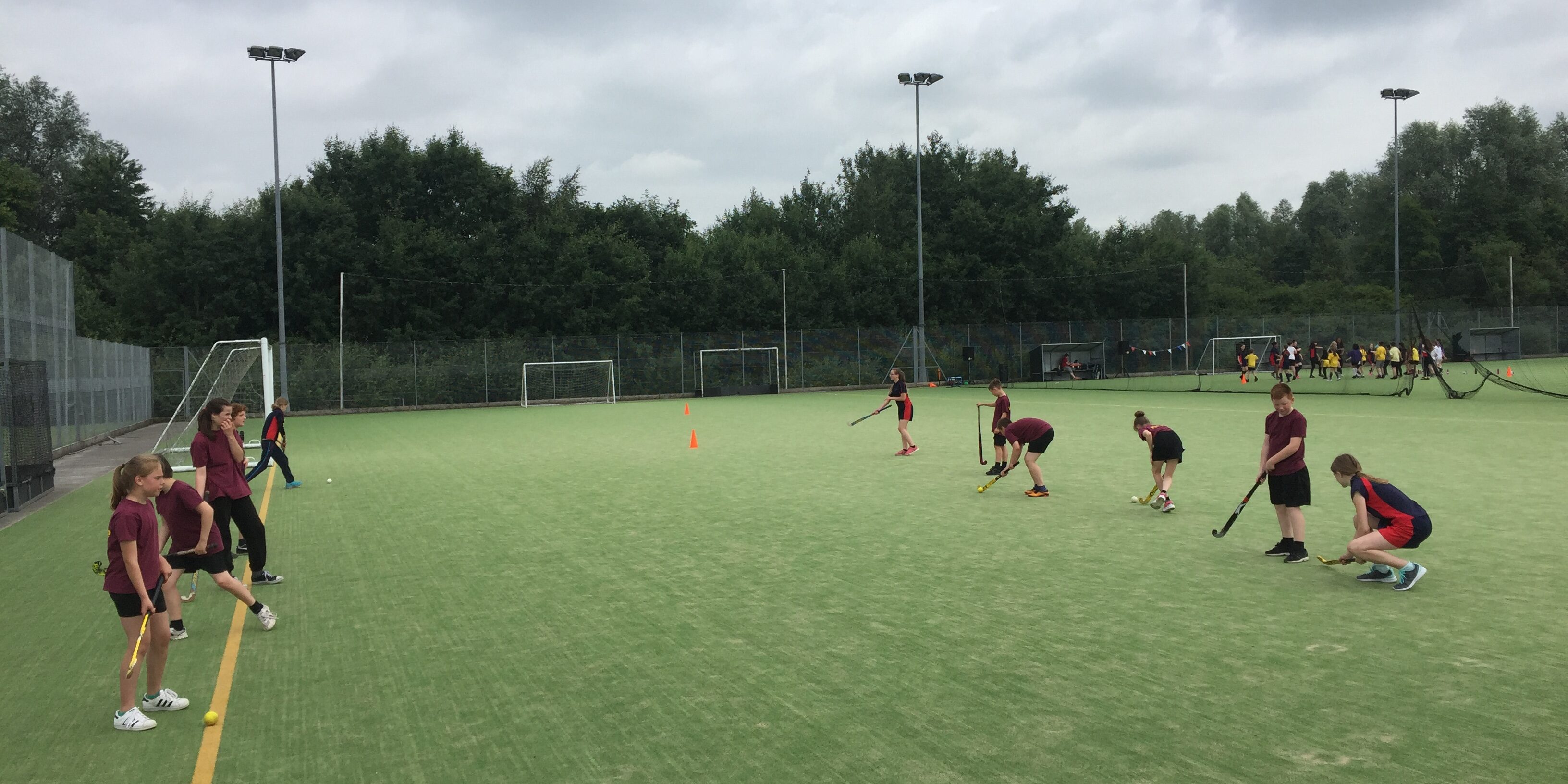 Group B starting in hockey group A are doing dodgeball.