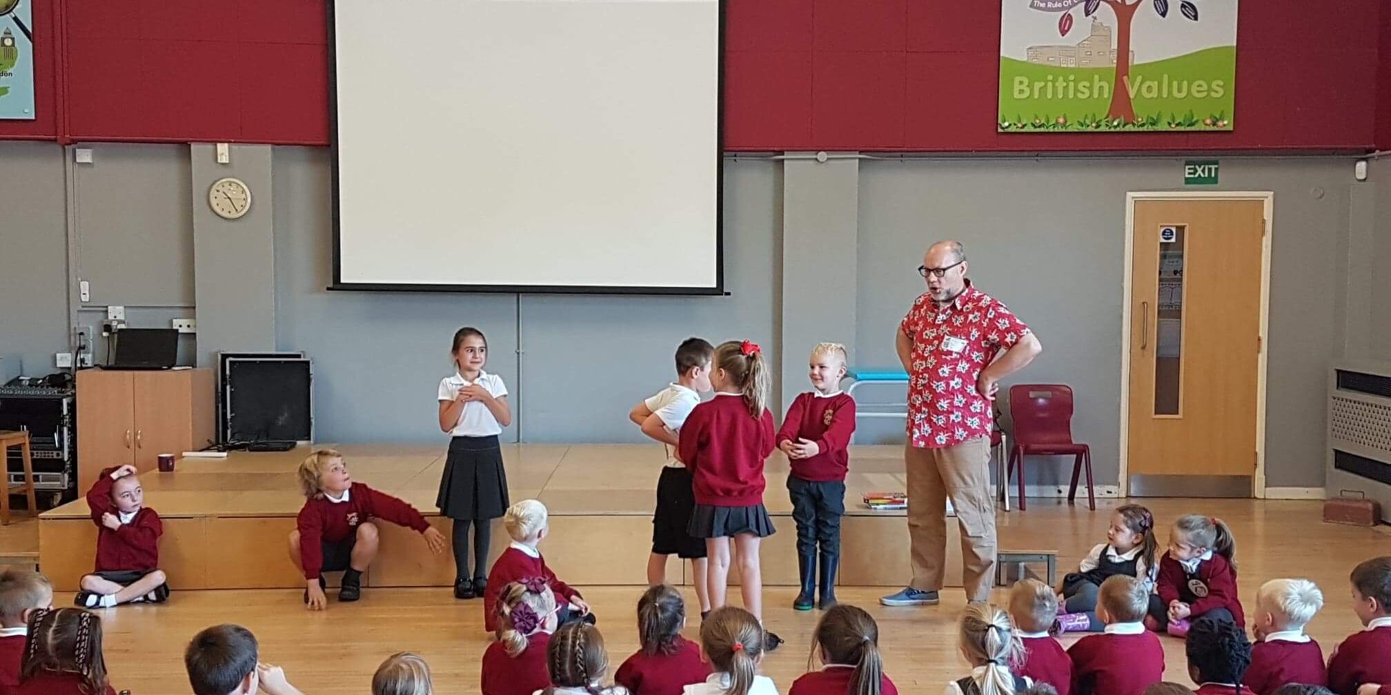 Key Stage One and Reception have enjoyed a visit from a famous author, Ian Billings. Ian showed the children how easy it was to use their imagination to create stories. The children helped by taking on a variety of roles in an alternative retelling of the Hansel and Gretel story.