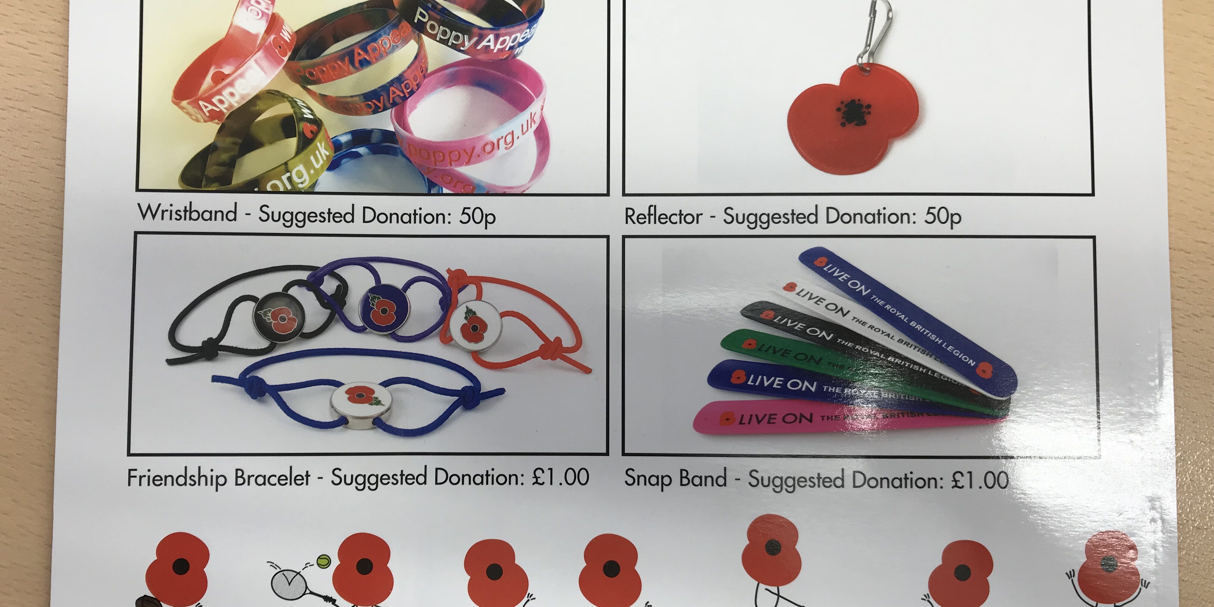 Our Head Boy and Girl will be selling various items in support of this years Poppy Appeal. If your child would like to donate to the appeal money should be brought in from Thursday 2nd onwards. Suggested donations are given on the photo below.